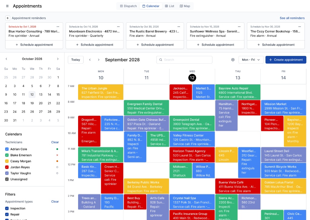 - Centralized Scheduling: Ember offers a single calendar for your entire team: assign jobs, track technicians in real-time, and automate recurring inspection reminders so nothing slips through the cracks.