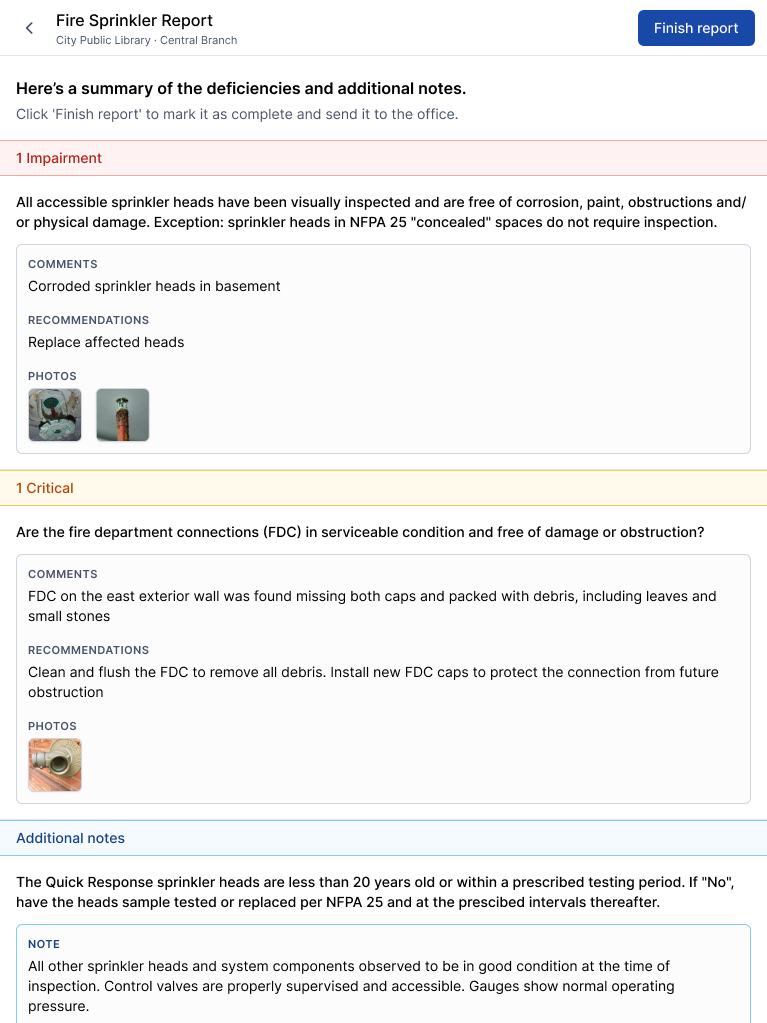 - Real-Time Review: The moment an inspection is completed, the deficiency surfaces in the office dashboard. There is no waiting for the technician to return to the office or upload a PDF at the end of the day.
